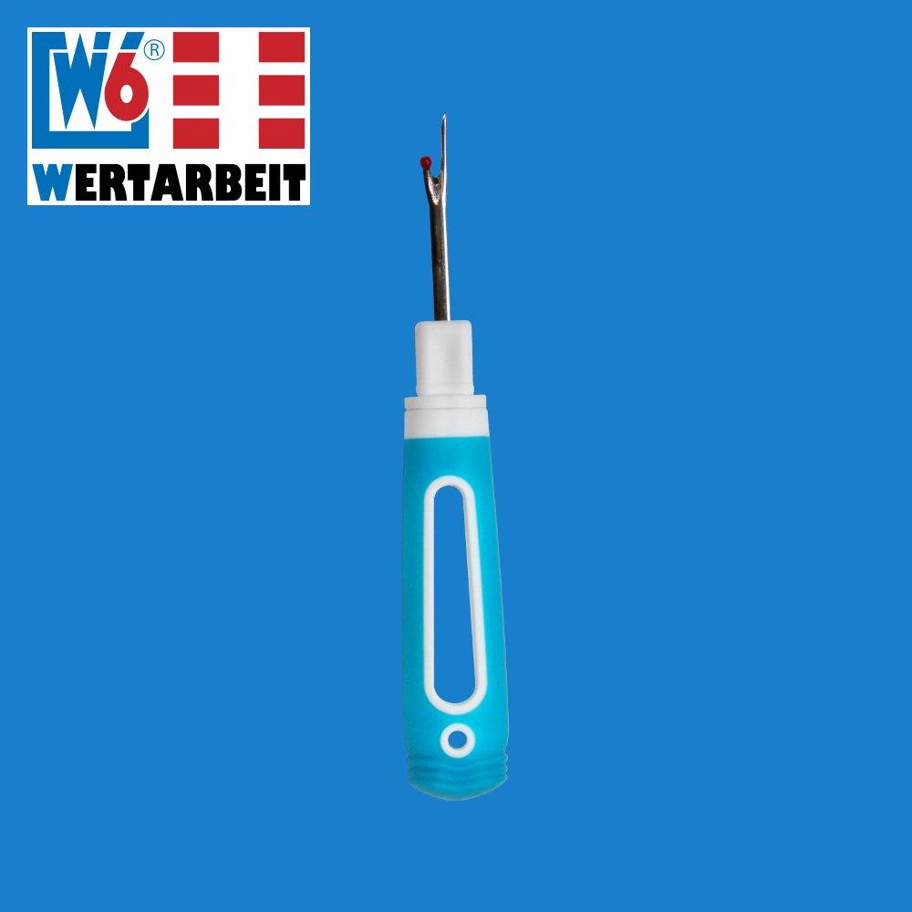 Der ergonomisch geformte Nahtrenner liegt gut in der Hand und erleichtert so die Schlitzarbeiten von feinen Näharbeiten wie Knopfloch aufschneiden und die Trennarbeiten in feinen Stoffen. Die Oberfläche besteht aus einem rutschfesten griffigen Material zur sicheren Aufbewahrung kann die Verschlusskappe auf die Pfeilspitze gesetzt werden als praktische Verlängerung kann die Schutzkappe auf die Steckvorrichtung gesteckt werden mit der blauen Rückseite lassen sich bequem die getrennten Fusselreste vom Stoff abstreichen W6 Tipp: der kleine feine Nahttrenner und der grobe Nahttrenner sind ein Muß in jedem Haushalt und im Bundel noch einmal günstiger! Video W6 Nahttrenner Set